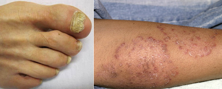 丝状真菌病:丝状真菌是一组寄生于皮肤角蛋白组织的浅部真菌。根据感染皮肤部位的不同,该类疾病又可分别称为体癣、股癣、手足癣和面癣;感染毛发称为头癣;感染指(趾)甲称为甲癣。