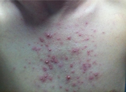 好发于四肢、面部和胸背部。表现为群集的毛囊性丘疹,最常见于艾滋病晚期的患者。原因不明,可反复发作,部分患者抗真菌治疗有效。