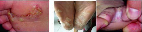 脚气的最大特征是痒,足部有水疱、脱皮、糜烂。