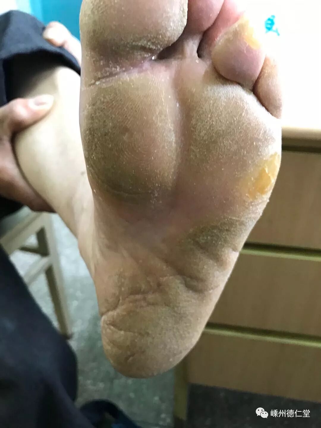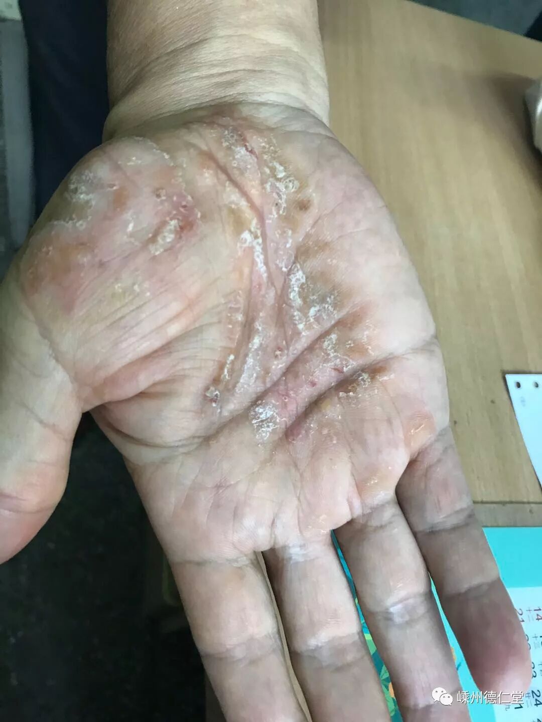 对一些手足皮肤肥厚似铠甲的病人,我一般会加用中药黄柏、苦参、川椒、威灵仙、地骨皮等煎水浸泡每天20分钟,中西医结合治疗效果会更好。