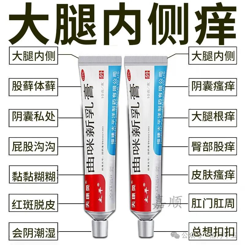 大腿内侧瘙痒股藓真菌感染湿痒红疹两侧痒私处皮肤瘙痒曲咪新乳膏