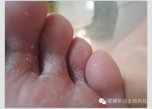 烂脚:烂脚丫就是所说的香港脚 ,很痒还起皮,脚丫裂口是真菌感染所引起,因为长时间脚处于湿润不通风的状态下产生。