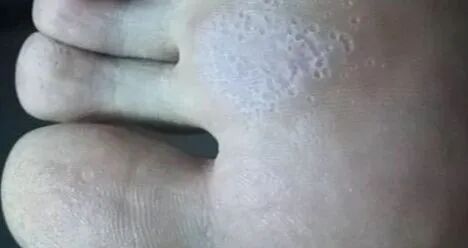 多见于足部多汗、经常浸水或长期穿不透气鞋的人,患者常感到瘙痒难忍,继发细菌感染时通常伴有恶臭,病变多见于以3、4趾和4、5趾间,时间长可累及所有趾间,表现为趾间糜烂、浸渍发白,除去发白的上皮可见红色糜烂面,有少许渗液。