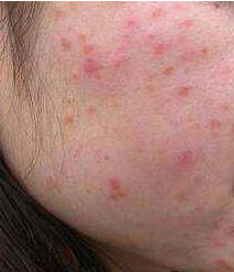 病发时患者颜面、颈部有轻度红斑、丘疹、肿胀,伴有瘙痒,严重的可出现渗液。有些人伴有过敏性鼻炎或哮喘等。