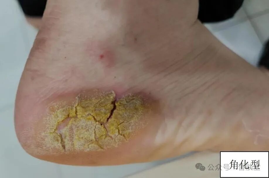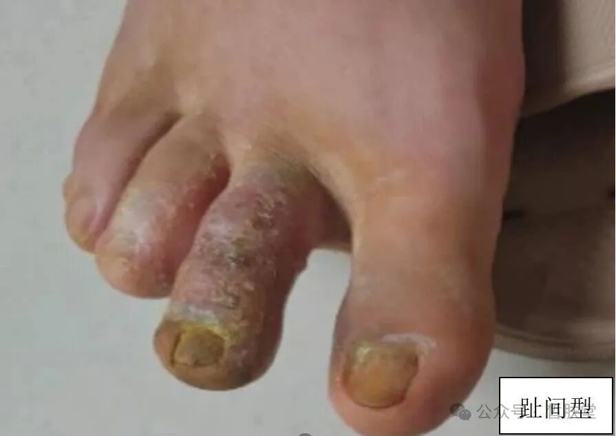 足癣根据临床特点分为:水疱型、趾间型、角化型。手癣根据临床特点分为:水疱型和鳞屑角化型。