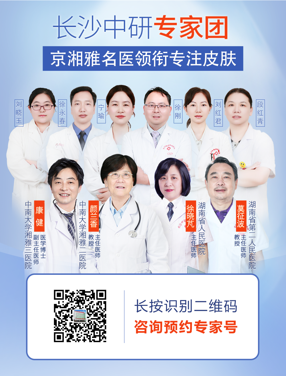 如果您有皮肤方面的问题或者需要预约挂号的,可点文章末尾阅读原文或长按识别下方二维码即可在线预约、挂号。
