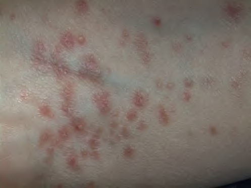 癣,是真菌感染引起的,会传染,皮肤上会出现红斑、水疱等,显微镜下还能看到真菌的身影。