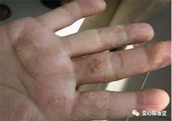 【手癣】又称鹅掌风,为发生在手掌、手指外的光滑皮肤的浅部真菌感染,多继发于足癣。