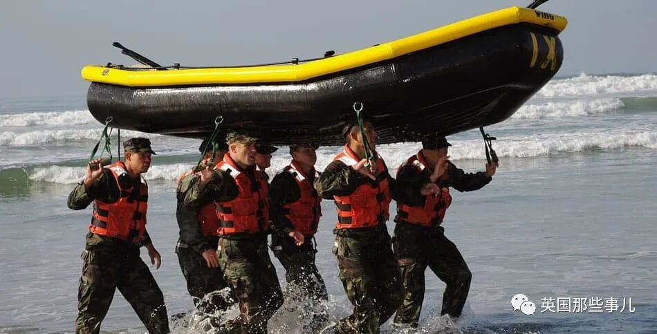 下午晚些时候,还给学员们进行了分组对抗,让他们头顶77公斤重的充气艇进行比赛。