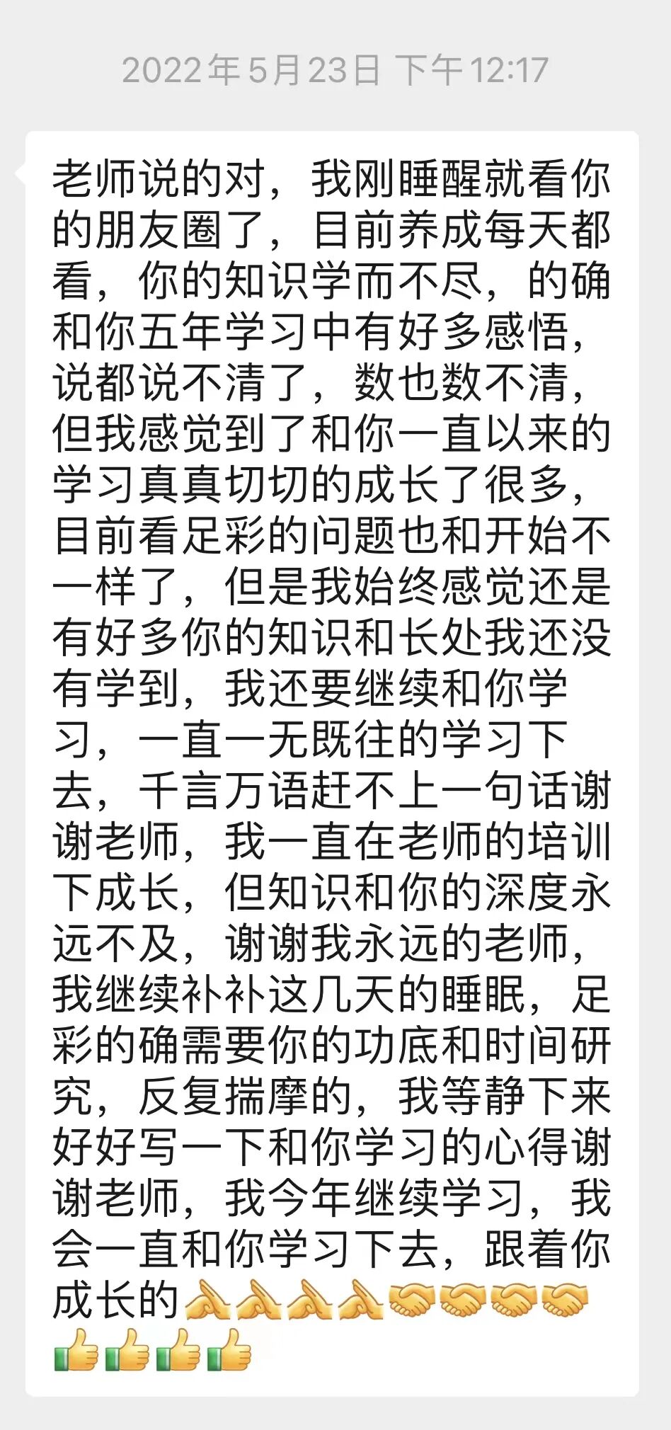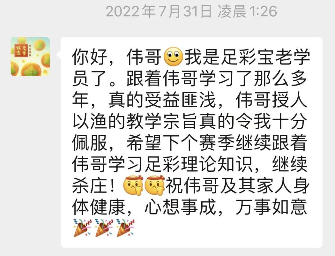 最早,我创办足彩宝知识平台时,也是摸着石头过河,但是每赛季,我听到微信中陆续有中奖反馈以及学员自发感谢我提高了他们的能力时,我觉得我这条授人以渔,知识为上的路是走对了。