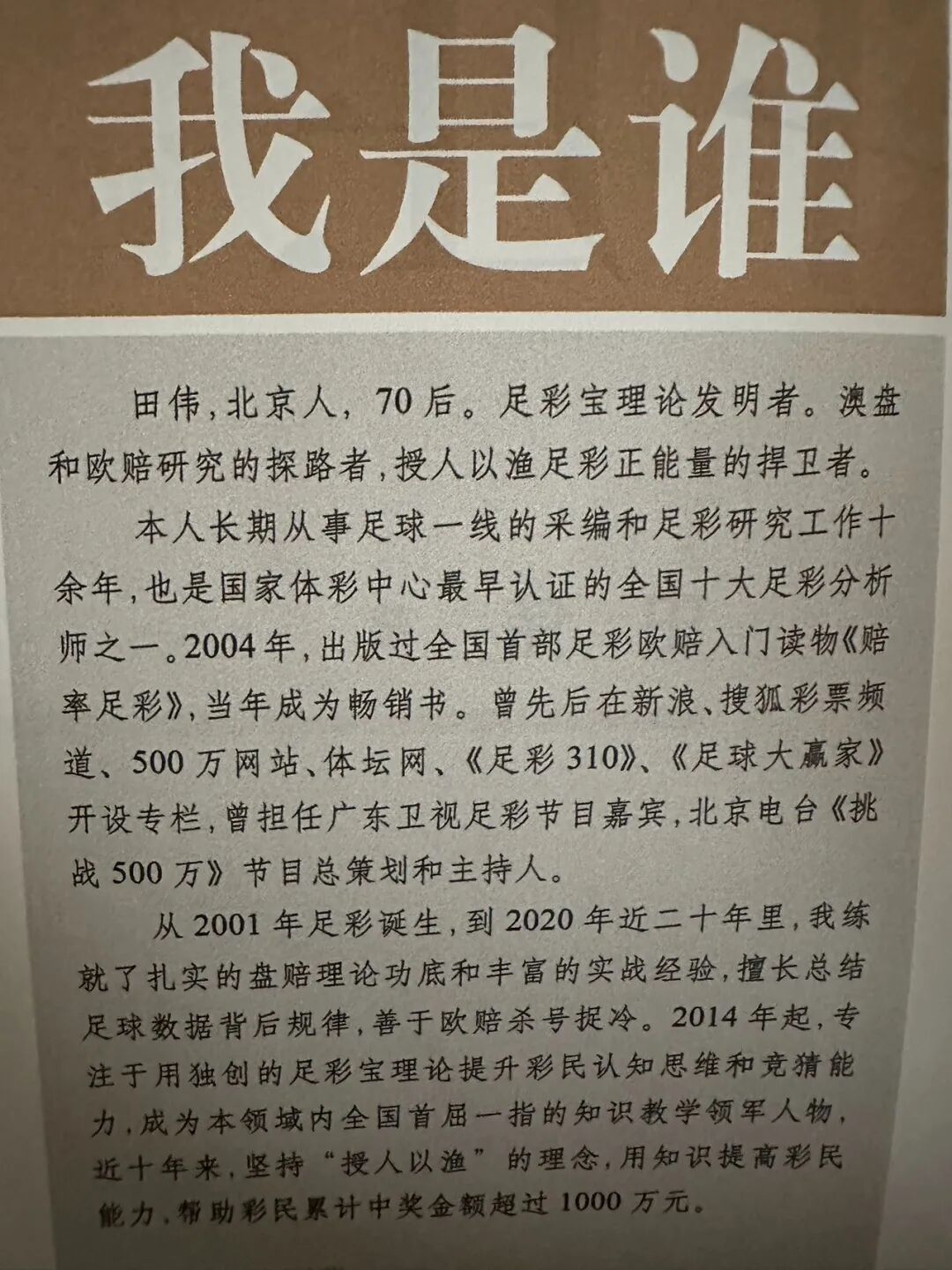 ✅1.我知道,足彩不是挣钱的工具,足彩只是爱好,我找田伟是想把这个爱好弄明白,玩这么多年,输也得输明白。