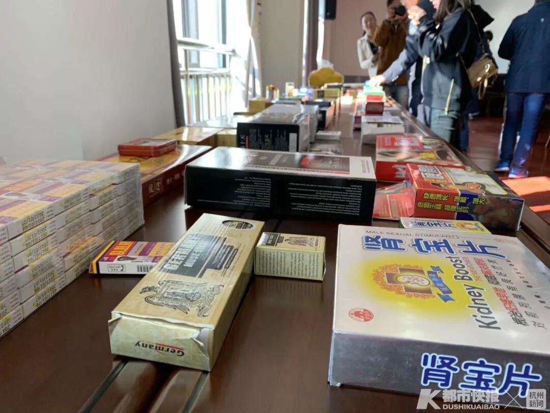 昨天上午,鄞江派出所里,各种品牌的伟哥堆满了一个长桌,大约有70多个品牌,有的包装简陋,有的包装华丽。
