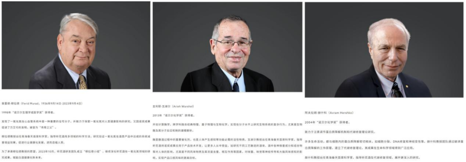 其中,穆拉德被誉为伟哥之父,瓦谢尔开创了计算酶学,郝什科致力于泛素调节蛋白质降解机制和代谢修复理论研究。在科学家团队这一块,听花酒可以说是远胜其他酒企。