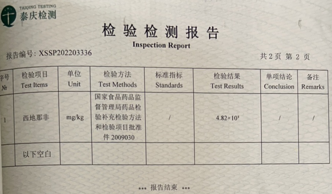 检测报告显示,所售鹿鞭丸违法添加西地那非。