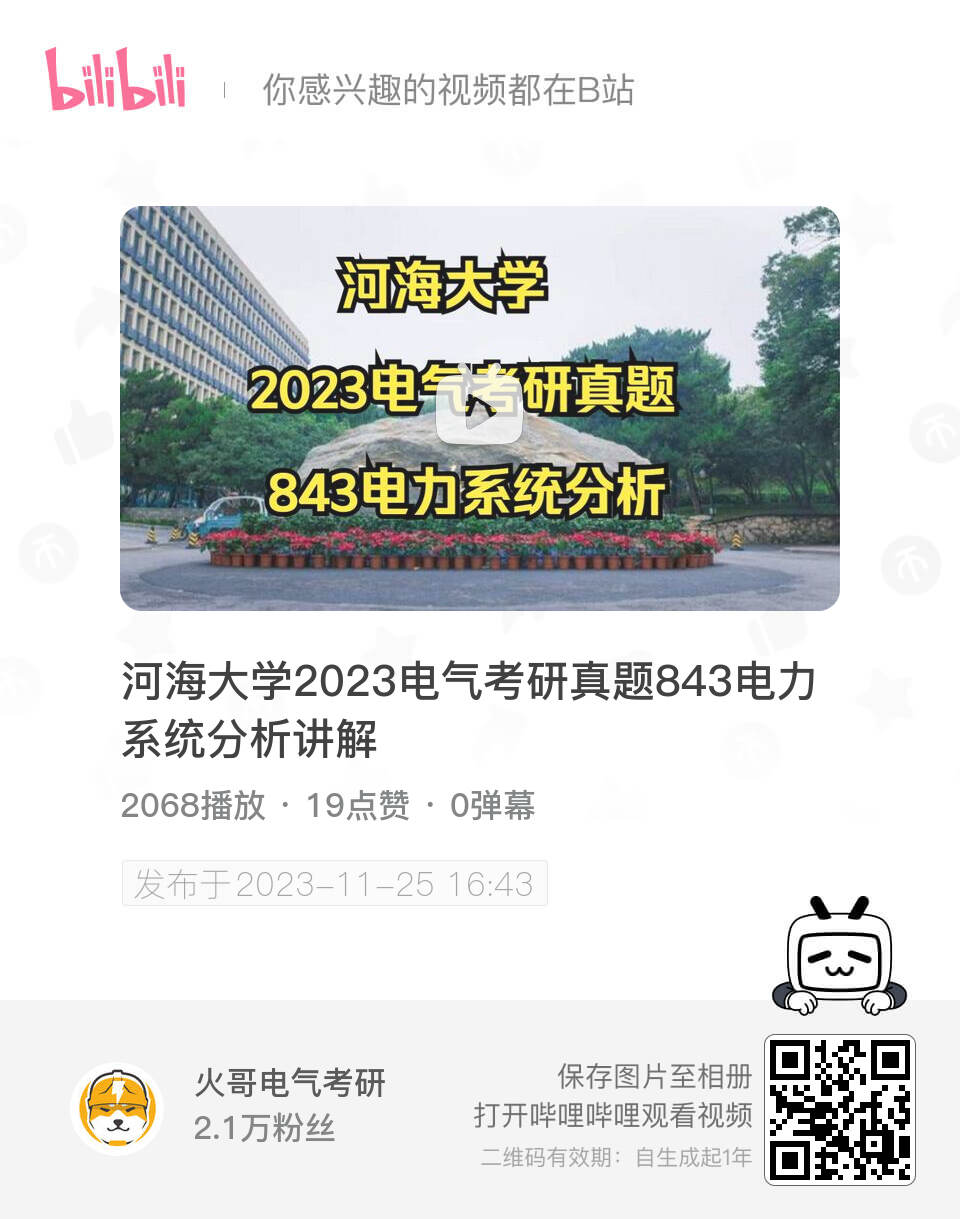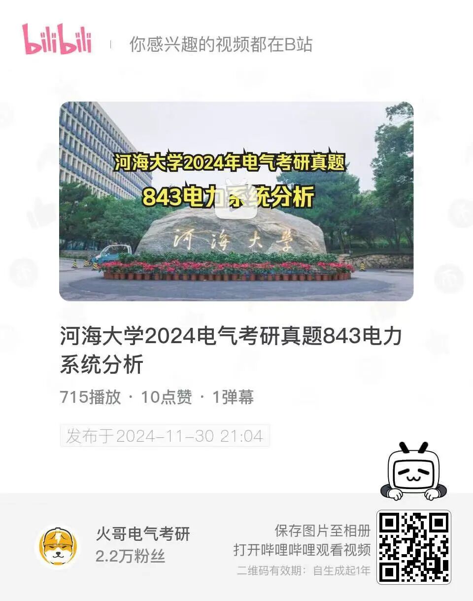 同志们!2024河海大学电力系统分析843真题讲解它来了!这所学校在江苏的就业非常不错,虽然它是一所以水利见长的大学,但是电网就业也非常好!在江苏地区有很高的影响力!