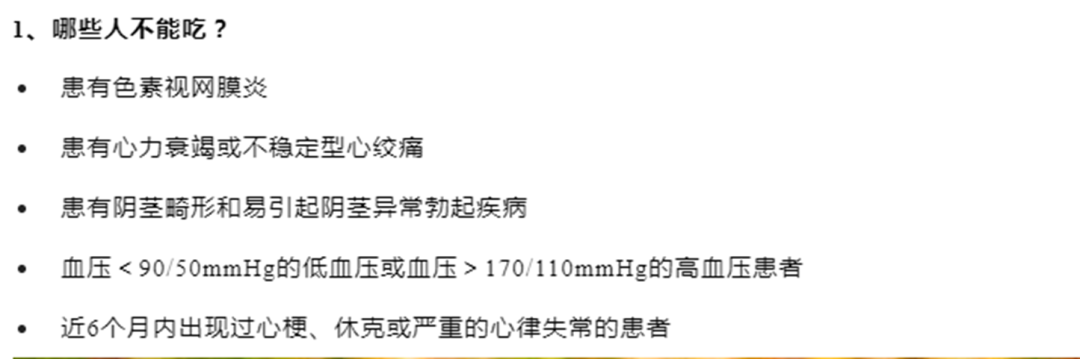 参考话术:您刚才说的是商品名,其实它就是西地那非(或他达拉非),西地那非起效较快点,作用时间在4-5小时;他达拉非起效稍慢,作用时间可达36小时。
