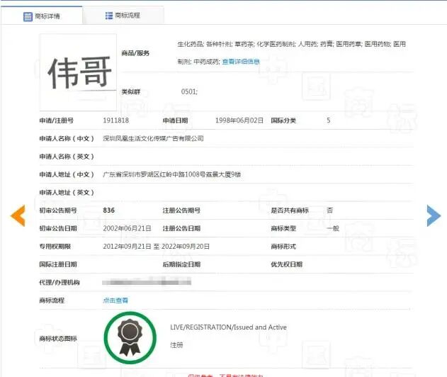 到目前为止,国内合法拥有‘伟哥’商标使用权的产品分别是广东的甲磺酸酚妥拉明胶囊、白云山制药总厂的枸橼酸西地那非以及东阳光药业生产的他达拉非,除此之外的抗ED药品叫‘伟哥’都是非法的侵权行为。凤凰公司董事长孙明杰在发布会上表示。