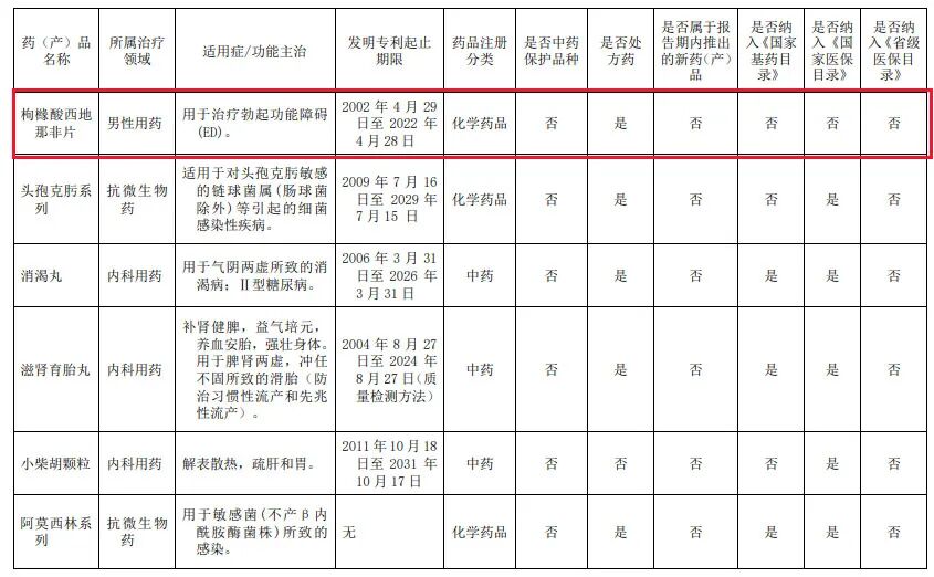 伐地那非则有科伦药业仿制产品获批,扬子江药业产品则已申报上市。