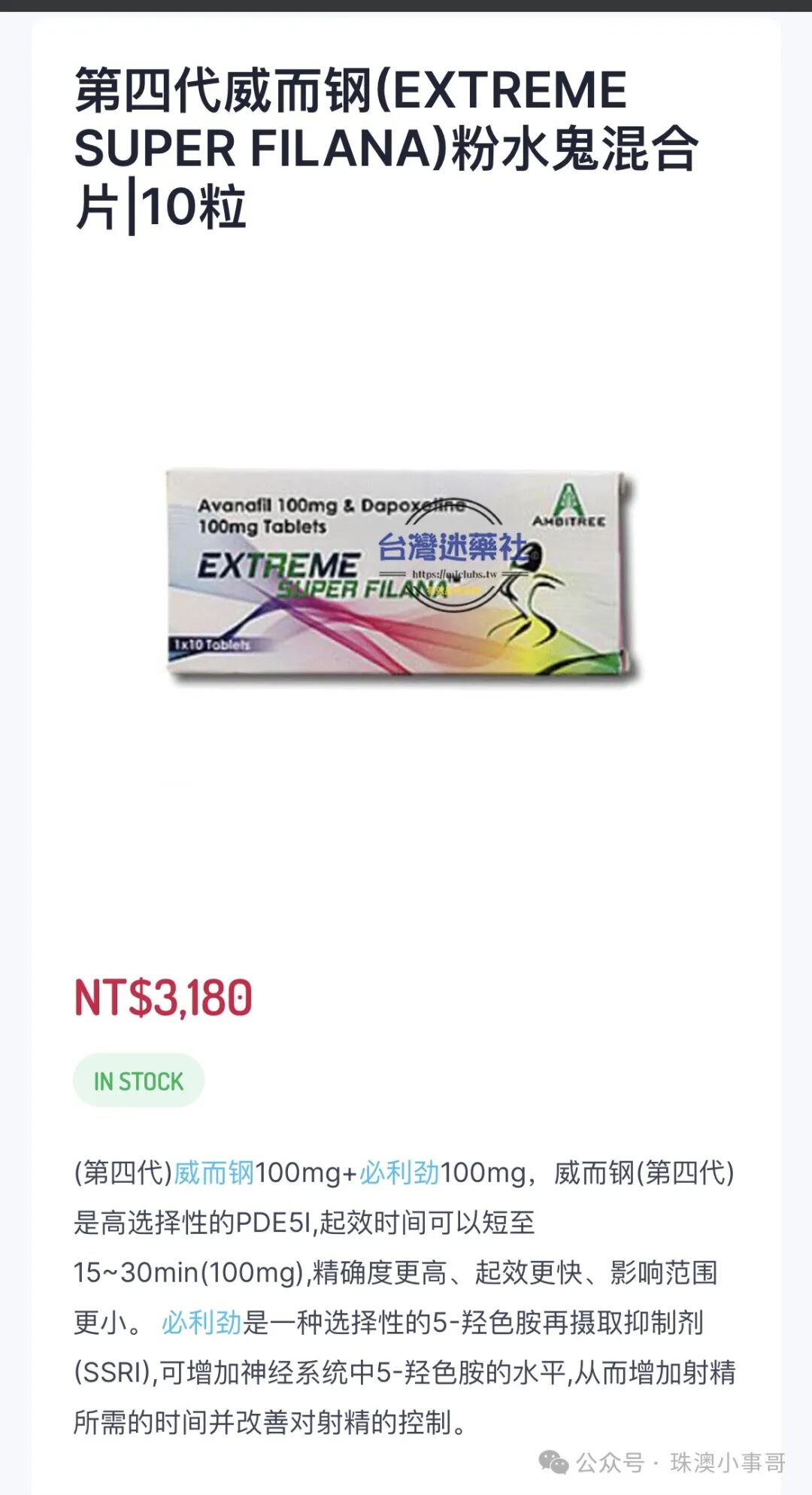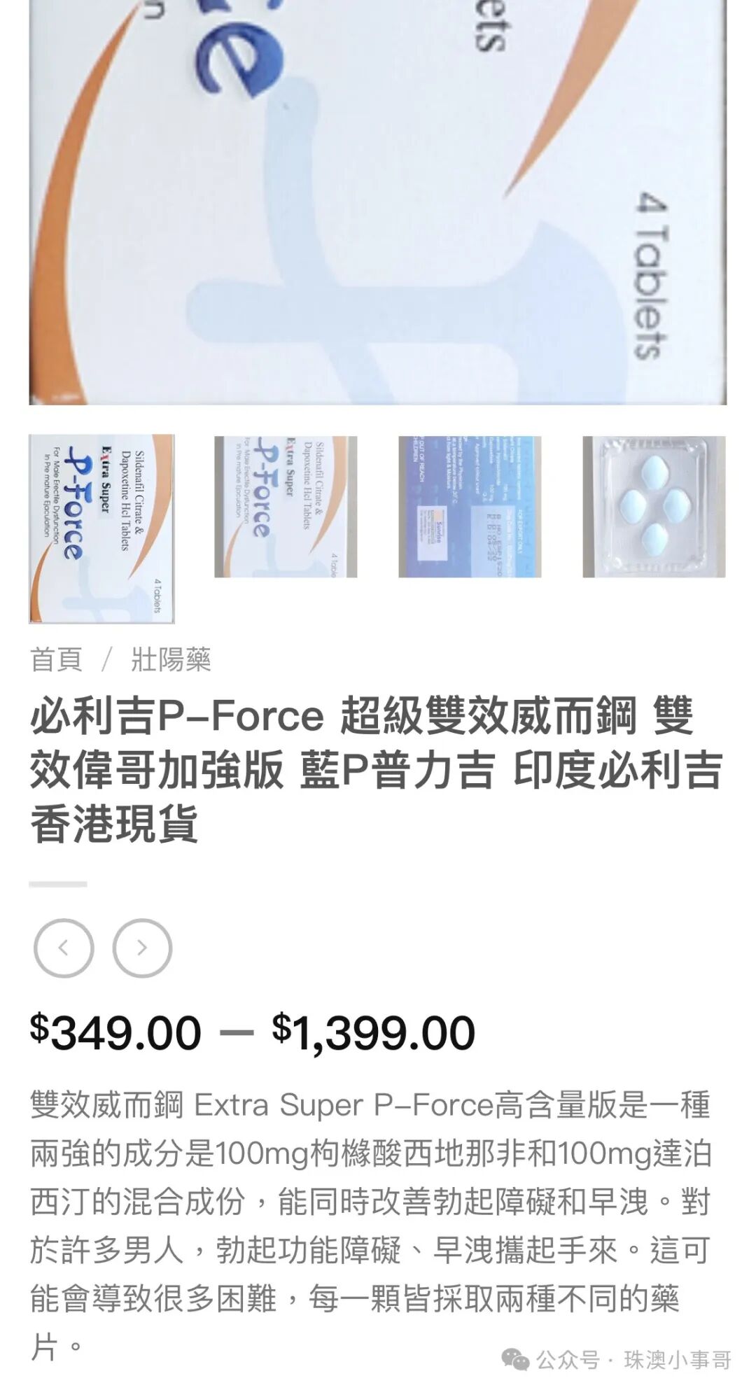 印度版每粒含60mg,售价约25元/粒。印度药厂生产的必利劲,售价约25元/粒根据医生的反馈,很多阳痿患者还有早泄的问题,所以医生在开具西地那非片或者他达拉非片的同时,也会给患者开具达泊西汀片,这两个药一起吃并没有相互抵触的作用。于是很有头脑的印度药企,便开始研制出了含有助勃+延时效果的复方制剂,即双效片,成功打开了市场,畅销全球。含有他达那非(20mg)和达泊西汀(60mg)的双效片,售价约30元/粒另外还需要说明的是,作为助勃药的西地那非(万艾可)和他达那非(希爱力),服用后并不会自动勃起,需要有性刺激的情况下才会生效。也就是说,服药后只有在你有性欲的时候,身体才会起反应。在明白这一点之后,才能明白那个关于伟哥的笑话的笑点在哪。