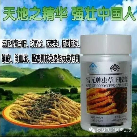 ①有效调节和治疗呼吸系统疾病它可以提供给我们冠状动脉和肺动脉充足的血液供应。中老年人,我们最先发现的问题是冠状动脉硬化和肺动脉不好,所以心慌气短,呼吸困难,造成了全身血液供应的不足,机能组织的退化,那么虫草可以保护中老年的心肺,根据科研和实践表明:冬虫夏草能够保肺益肾、止血化痰、明显地舒张支气管平滑肌,增强肾上腺素等,因而对改善肺功能、老年慢性支气管炎、哮喘、肺气肿、肺心病、呼吸衰竭等疾病起到了辅助治疗作用。对中老年人来讲是一个难得的好产品。②对心脑血管疾病的作用冬虫夏草能显著降低血液中的低甘油三酯、胆固醇和脂蛋白含量,从而抵抗血栓形成,抗心律失常并有效降血压,试验表明虫草治疗心律失常和高血压总有效率达70%以上,降低胆固醇总有效率达76.2%。荣格虫草有极强的清除血液垃圾的作用,降血脂、降血压,减少降压西药的用量,从而减少肝肾损伤,更能改善造血机能,营养心肌,对抗心脏肥大。他还能恢复血管弹性,改善血液循环。虫草就是心脑血管病人的超级保护神。③调节肾脏、提升性机能的作用虫草能减轻慢性病的肾脏病变,改善肾脏机能,起到补肾壮阳的作用。荣格产品提升性机能,和市面的所有春药那是不一样的,春药解决的是局部和暂时的事情,荣格虫草解决的是一生的问题。提到性机能问题,各位一定要记住,性的问题本质上是性功能障碍和性功能下降。今天在中国男性中的比例发生的多,增长速度也很快,人们到处求医问药,还是治标不治本。那么性功能的下降首先是机体免疫力的下降,是全身组织器官退化和衰老的表现,更年期提前来到也成为一种现状,特别是它和肾虚是连在一起的。送给大家一句话,人到中年必肾虚,我们人体,中医讲一口气,一腔血、气为血之帅,血为气之母,气行血行,气滞血瘀,血瘀气滞,形成了一个辩证的关系。④调节肝脏功能,杀灭肝脏病毒虫草可以有效减少有毒物质对肝脏的损伤,对抗纤维化的产生,虫草中的有效成分,虫草酸和虫草素,通过调节免疫功能,增强肝脏的抗病毒能力。对病毒性肝炎,甲肝、乙肝,有很强的杀死病毒的功效。⑤明显的抗癌防癌作用冬虫夏草能抑制癌细胞裂变,阻延癌细胞扩散,显著提高体内的T细胞、巨噬细胞的吞噬能力,使他们与癌细胞战斗的能力大大增强。大家都知道放化疗去杀伤癌细胞的同时却大面积杀伤人的正常细胞,最后,癌症病人不是被癌细胞给杀死,而是死于放化疗对正常细胞的杀灭造成的死亡。虫草对癌症的放化疗治疗中,对于白细胞下降速度的控制起到了决定性的作用。对于放化疗患者,虫草能明显提升白血球和血小球的数量,迅速改善放化疗后的呕吐恶心、胃口差、头发脱落、失眠等症状,可说是苦海之舟。长期服用,能够防治肿瘤复发。虫草被公认为抗肿瘤战士,能明显增强红细胞粘附肿瘤细胞的能力,抑制肿瘤细胞的生长和转移。现在美国,已将虫草作为抗肿瘤新药,进入临床三期。三、松花粉