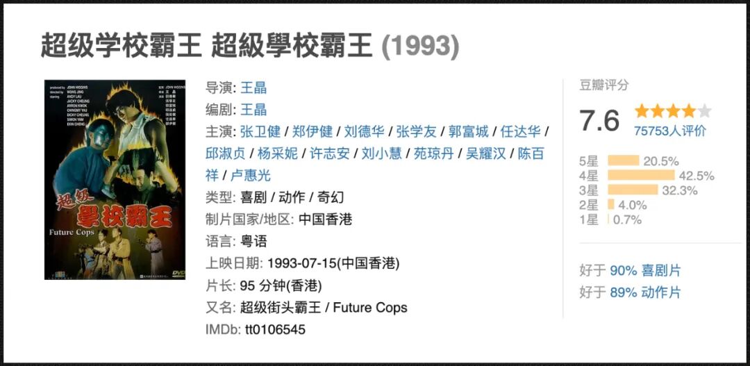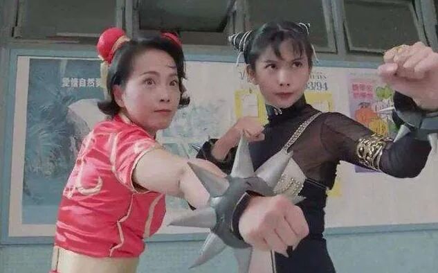 比如1993年的《超级学校霸王》,看看这个演出阵容,四大天王来了三个,给主角张卫健搭戏。剧情里郭富城和郑伊健COS隆与肯,邱淑贞COS春丽。