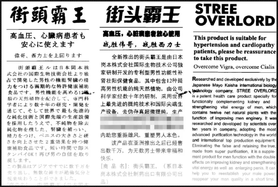 在谷歌上搜索药品编号,得知这是一种名为Stree Overlord的日本专利药丸。然而这东西只能骗骗不会中文的,中国人看完只有会心一笑。