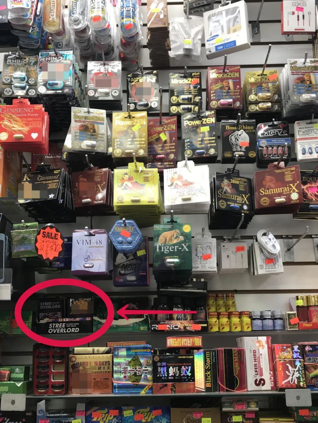 到美国的加油站、或者华人杂货铺随便走走,偶尔能在无人的角落发现男性增强丸、补充剂、中草药……以及各种黑市间流通的狠货陈列在一起。