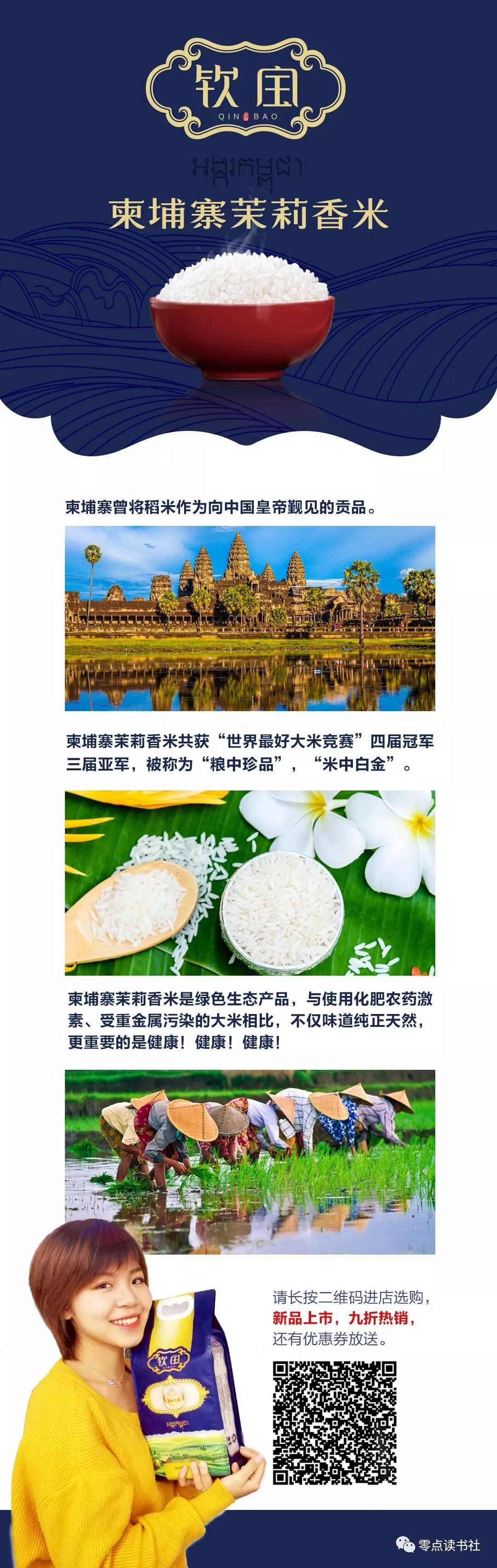 诚意推荐柬埔寨向中国皇帝朝觐的贡品,世界最好大米竞赛四届冠军、三届亚军,无化肥、无农药、无激素、无转基因、无公害、原生稻种的柬埔寨茉莉香米,健康你的身体,惊艳你的味蕾,长按图中二维码认别可拍下。