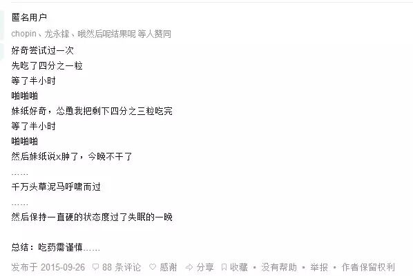 一般伟哥的药效为一个小时,有网友不小心吃多了,于是就整夜无眠。