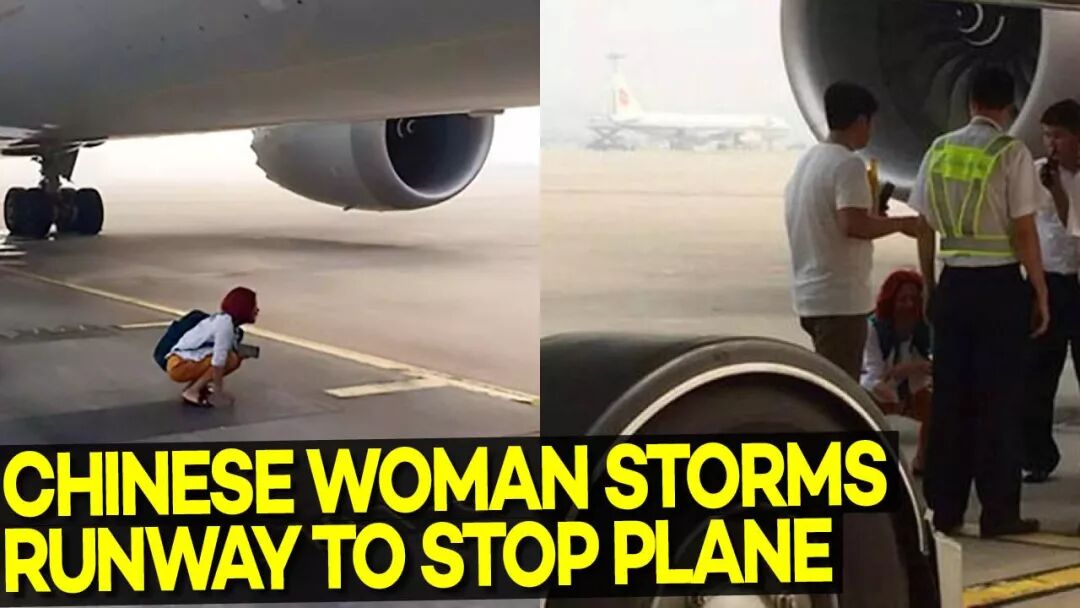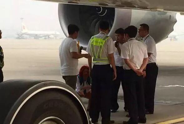女乘客直接蹲在飞机下面,声称"不给我上去我就不走了",逼迫机组打开舱门让自己登机。
