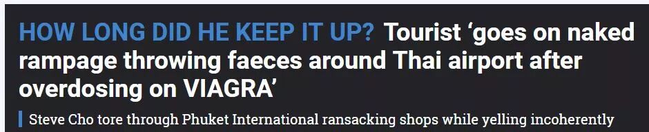 一名美国华裔男子服用过量"伟哥"后精神错乱,大闹机场。