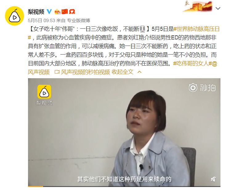 很多人都以为伟哥只会男人吃,实际上,对于重度肺动脉高压患者来说,这种药就是续命药。