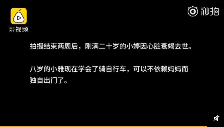 这样的事件也并非个例,梨视频采访的案例中,还有这样的一个女孩: