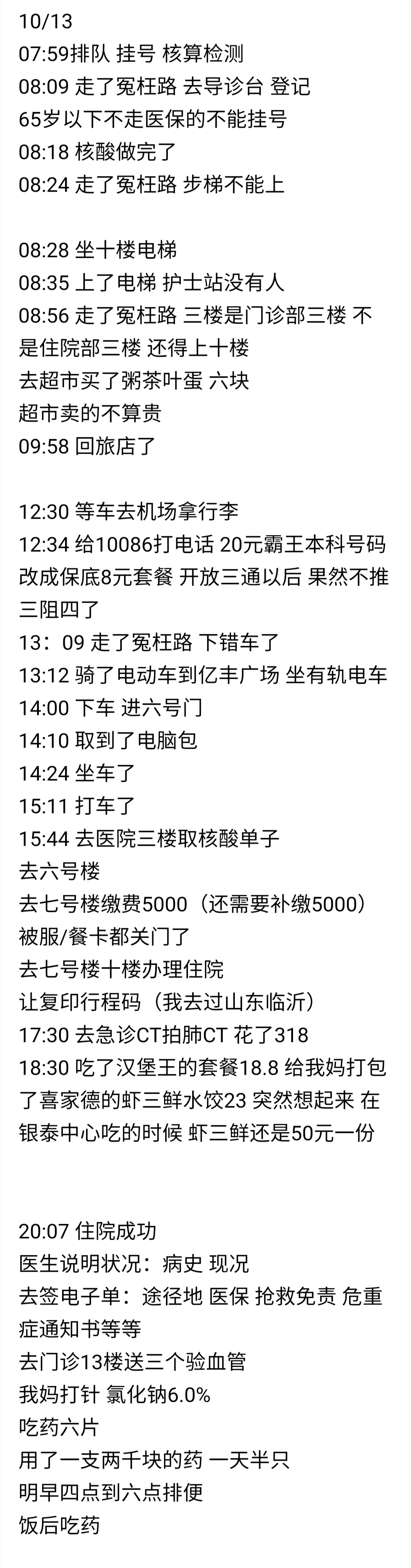要住院前,我们需要拿到病号及陪护的核酸检测,好不容易等到了检测结果,医院又因为满额没有病床而一度拒绝收治。