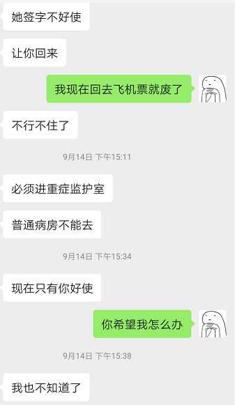 你能不去深圳了吗?我刚才办了入院手续,医生不让我住普通病房,要我住ICU,但住ICU必须要有人陪护,还要有人签字,我说了你回不来,我死在医院也不用医院负责,但是他们坚持不让,我应该怎么办?