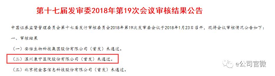 康宁医院也曾申请A股上市,今年1月24日被发审委否决。