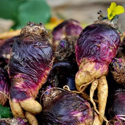 玛咖为十字花科独行菜属的一年生或两年生草本植物,原产于秘鲁海拔3500米以上的安第斯山区,可在无肥料、缺氧、昼夜温差大、长期冰封的独特环境下吸收土壤之精华而正常生长。
