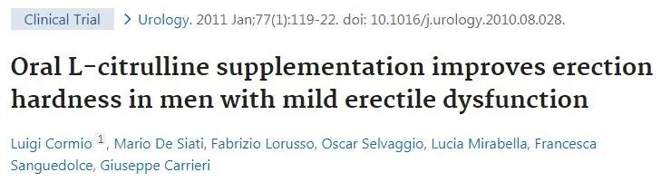 1.Cormio L, De Siati M, Lorusso F, et al. Oral L-citrulline supplementation improves erection hardness in men with mild erectile dysfunction.Urology. 2011;77(1):119-122.