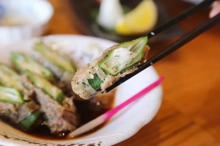 这种奇妙的组合应该不多见吧~秋葵吸收了肥牛的肉汁,变得更加水灵,一口咬开爽滑浓香,每口都是满足!