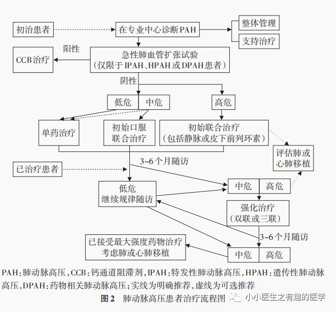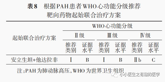 5.靶向药物联合治疗:尽管近年来PAH药物治疗取得巨大进展,但患者长期预后仍不理想。危险分层为中危或高危的患者均推荐联合治疗。