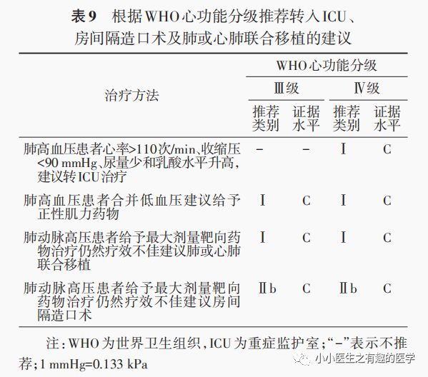 对WHO心功能Ⅳ级的患者,建议先给予以静脉或皮下前列环素为基础的联合治疗至少3个月,仍然疗效不佳时可考虑肺移植或心肺联合移植。