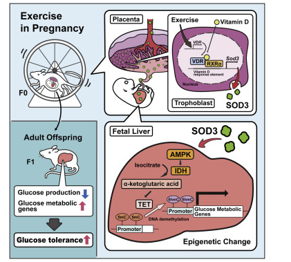 该工作发现孕妇运动增加胎盘表达并释放超氧化物歧化酶 3(SOD3),能够显著地改善后代葡萄糖稳态,为调节后代健康代谢、抵抗疾病跨代传播提供了新途径。