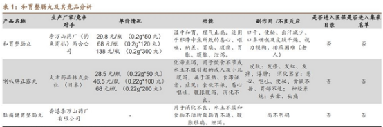 1、 和胃整肠丸量价齐升:独家OTC产品,目前供不应求,近两年逐年提价20%,具有极强的市场定价权 。和胃整肠丸在广东、广西、福建等地享有高声誉,作为独家OTC产品,目前供不应求,近两年逐年提价,同时正向沿海以外地区进行销售渠道扩张,收入有望持续增长。