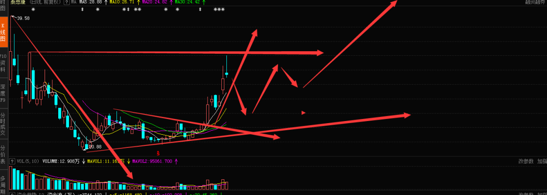1、今日冲高回落顶发还是受压34这里,而这个位置刚好就是上一次涨停价附近,而这里换手达到了55%,所以在这里受压解套别人,走这样的行情是正常的。而未来 如果突破了34整体的空间就打开来。
