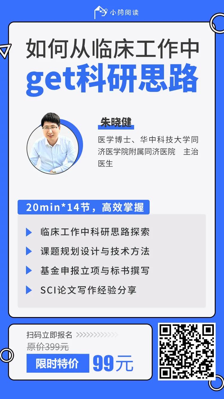 在忙碌的临床工作中,想发一篇SCI的心格外明显了!如何才能通过一个好的idea,发表一篇好文章?小狗阅读团队联合三甲医院主治医师朱晓健,围绕临床工作中如何培养科研思路,结合真实临床案例,深入浅出地教你学会如何从临床工作中找到一个好的idea。