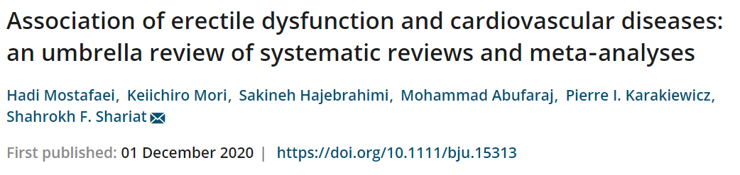 勃起功能障碍(ED)是男性生殖系统中特有的疾病,影响约40%的70岁以上男性。既往研究表明ED与心血管疾病有关,因为ED说到底是一种血管病,是心脑血管等慢性疾病的早期征兆。