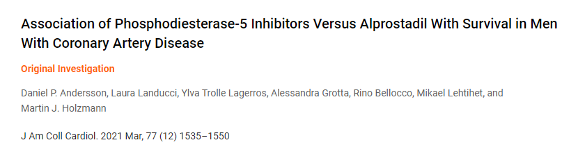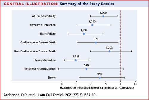 这项最新研究涉及16548名接受PDE5抑制剂治疗的患者和1994名接受前列地尔治疗的患者。比较了前列地尔和PDE5抑制剂对稳定性冠状动脉疾病患者的影响。