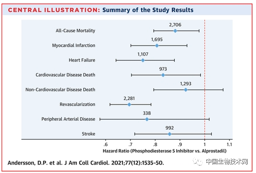 研究表明,在平均5.8年的随访期间,PDE5抑制剂组有2261人死亡(14%);前列地尔组为521例(26%)。接受PDE5抑制剂治疗的患者其死亡风险比接受前列地尔治疗的患者低12%。