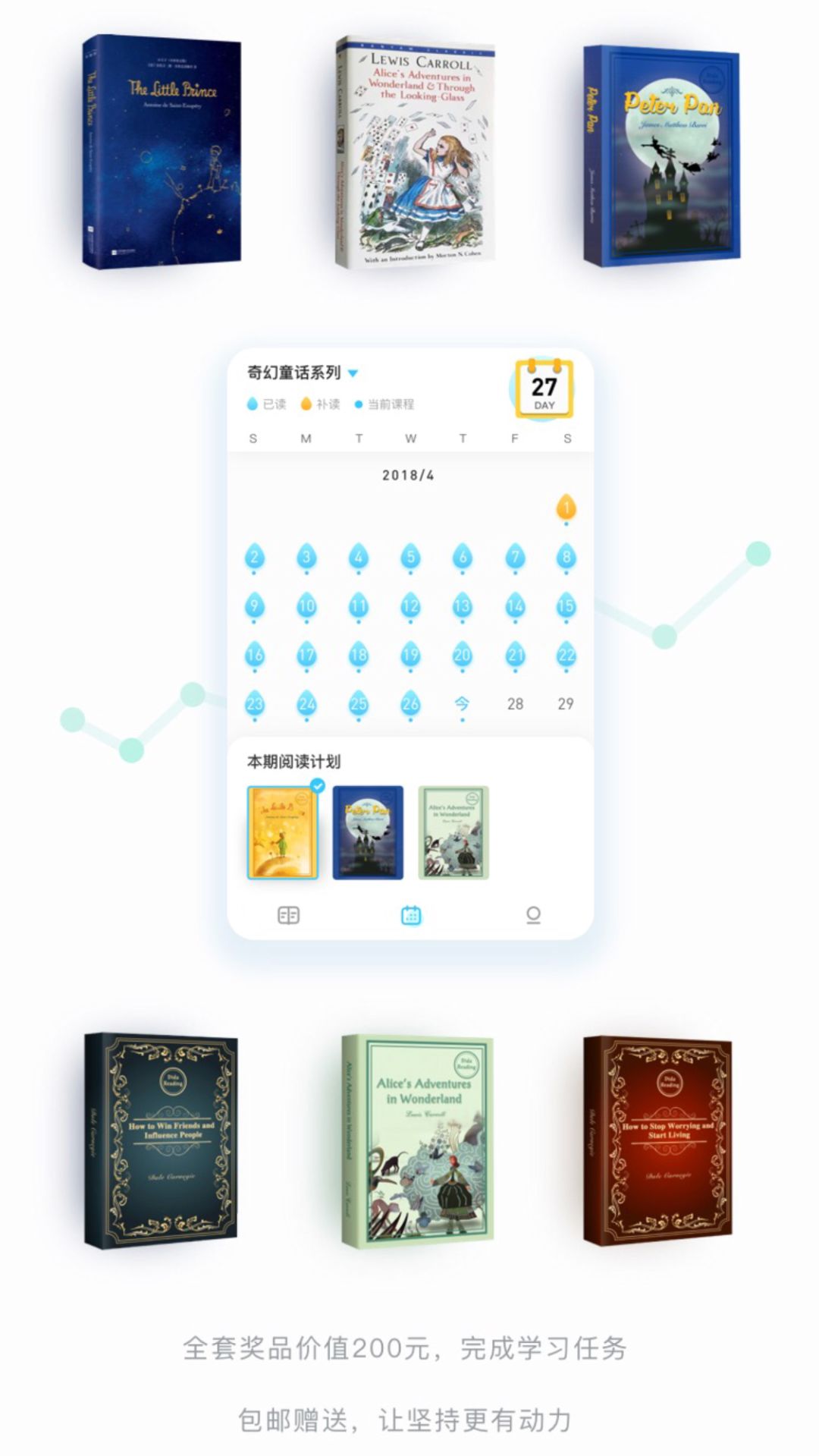 最后,你每读完一本书,都会受到相对应的彩蛋,包括周边礼品和英文实体书,我们努力用惊喜回报你的坚持。