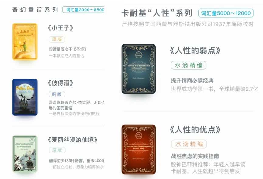 帮你快速提升英语水平。10分钟,搞定两篇四六级文章的阅读量。准备考研的同学,水滴阅读所推荐的原著也能够帮你提升语感和阅读能力。